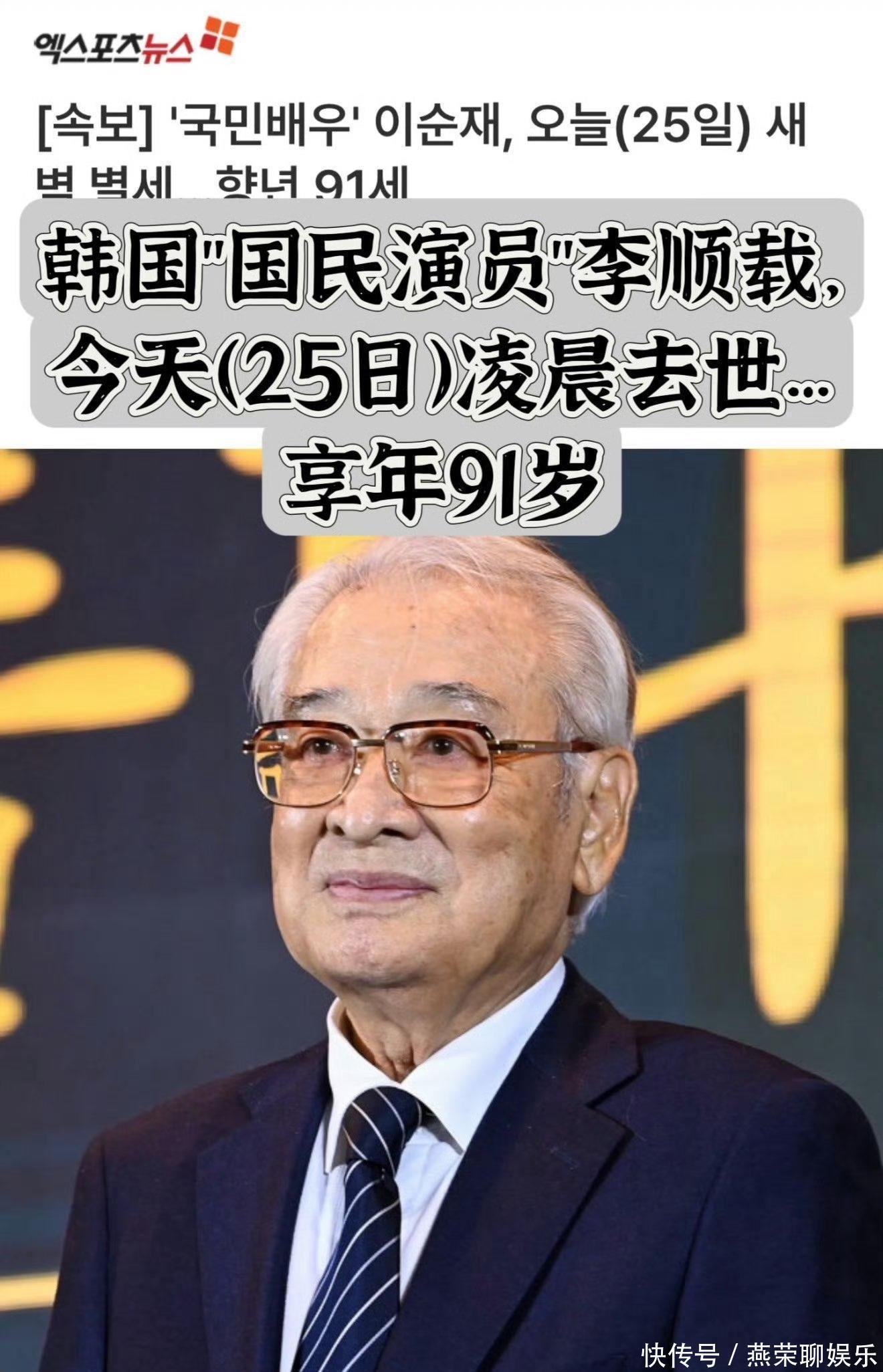 11月25日,韩国演艺界“国民爷爷”李顺载在凌晨溘然长逝,享年91岁,近70年的传奇艺术生涯在暴雨中的首尔画上句点。