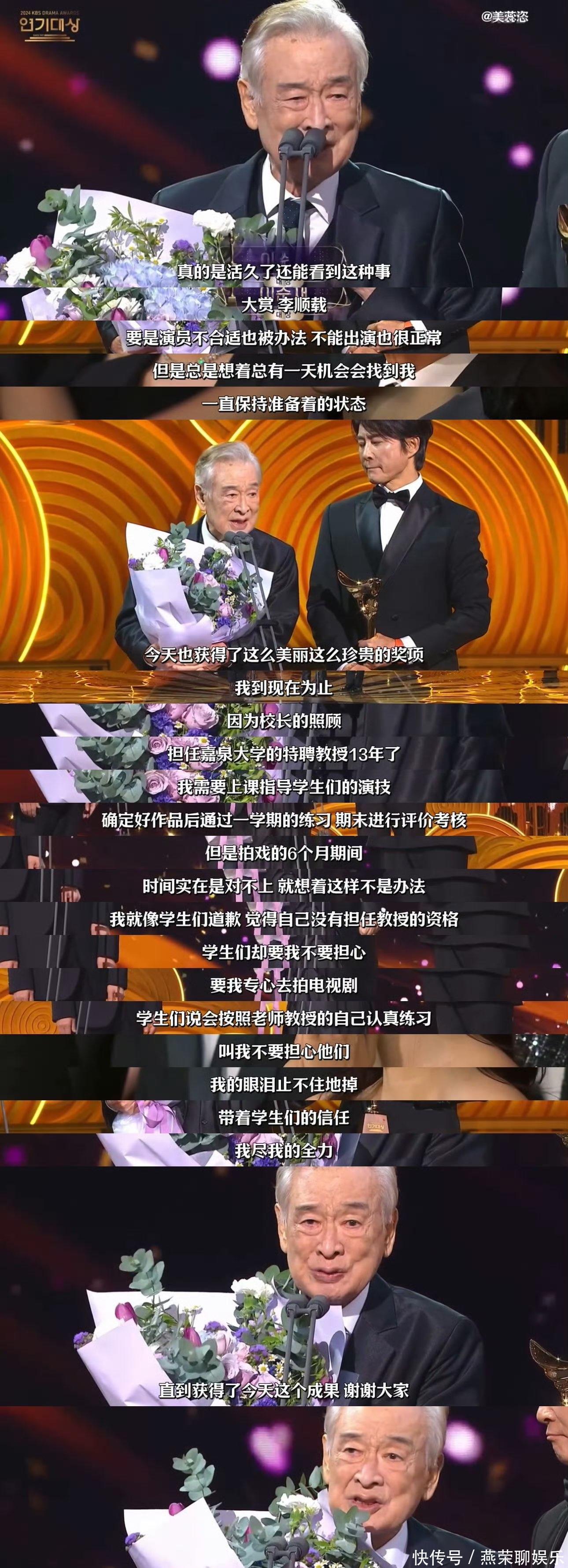 今年年初的时候,李顺载凭借《狗话》拿到了kbs大赏,成为历代最高龄大赏得主,也是他人生最后的颁奖礼。